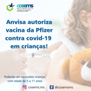 A Vacinação de crianças de 5 a 11 anos deve começar nos próximos dias, os municípios de MS já abriram cadastro para os pais ou