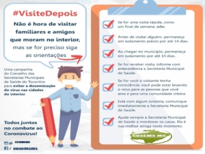 Conselho lança campanha “#VisiteDepois”: objetivo é conscientizar pessoas a evitarem visitas a municípios durante a Pandemia