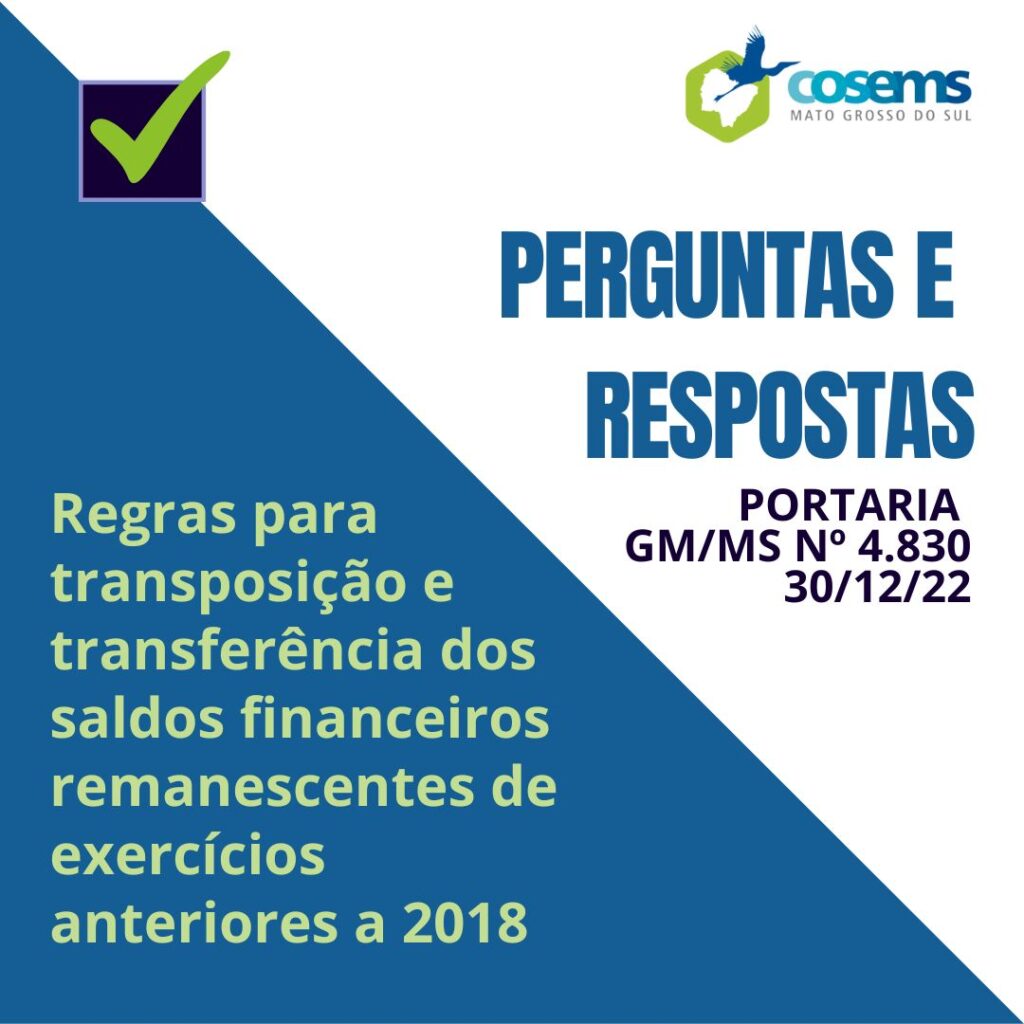 Perguntas e respostas sobre a transposição e transferência dos saldos financeiros remanescentes